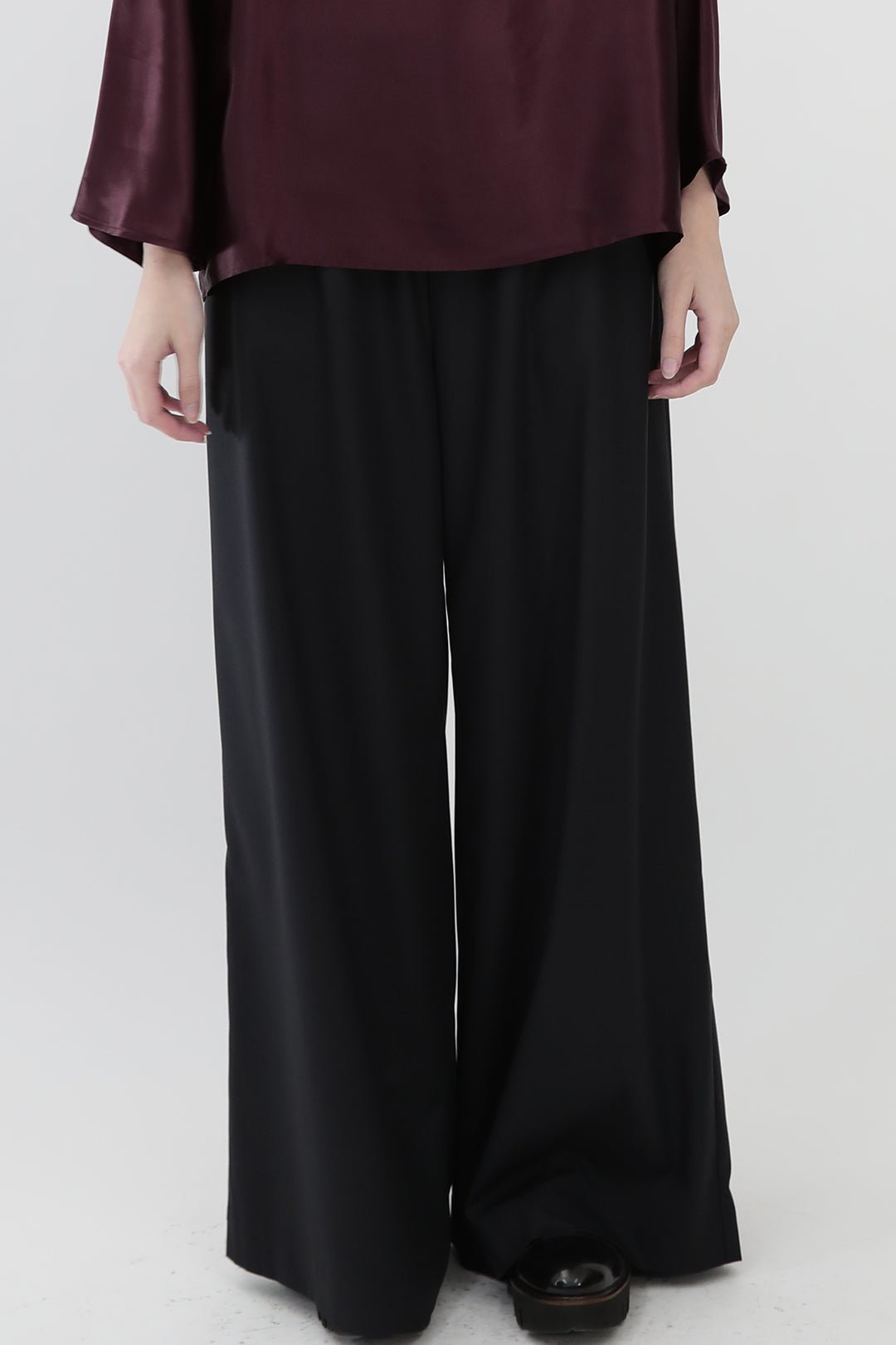 Meet the Palmetto in easy-care Italian Gabardine. smooth lightweight and beautifully draped with a wide leg. The Palmetto has an elastic waist for an effortless pull-on in a classic fit – you’ll wear this trouser-like style in your day-to-day or dressed up for office -to-evening-wear chic. Best of all. our Italian Gabardine does not wrinkle and has side pockets.