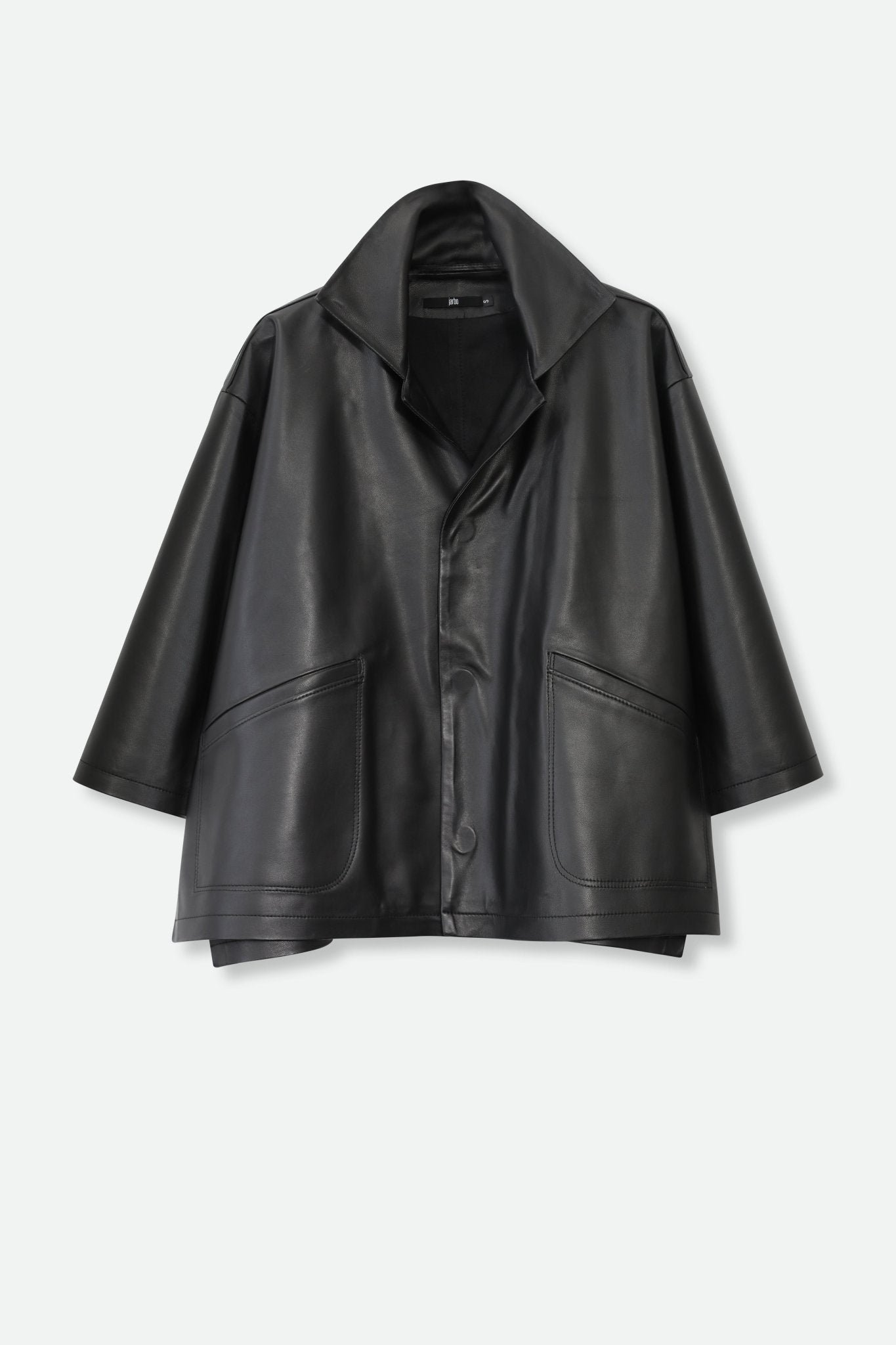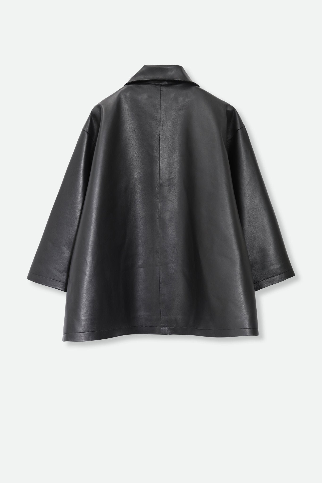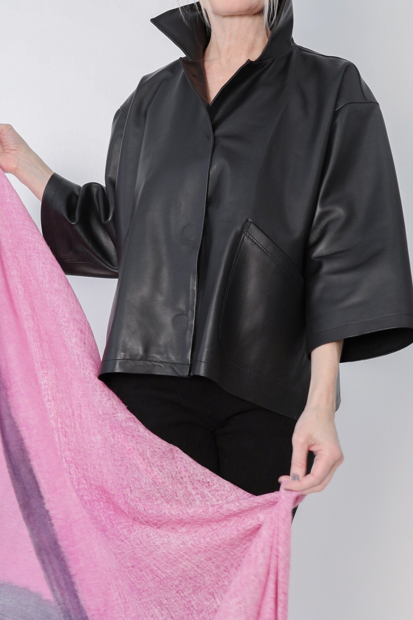 Elevate the everyday with the Rimini leather jacket in black. The upturned collar frames your face. while the magnetic snap closure allows you to wear the jacket open or closed to better match your outfit and mood. This reconstruction of the best-selling  is made with luxurious. soft. and premium leather. making it a chic addition to your wardrobe any time of year.